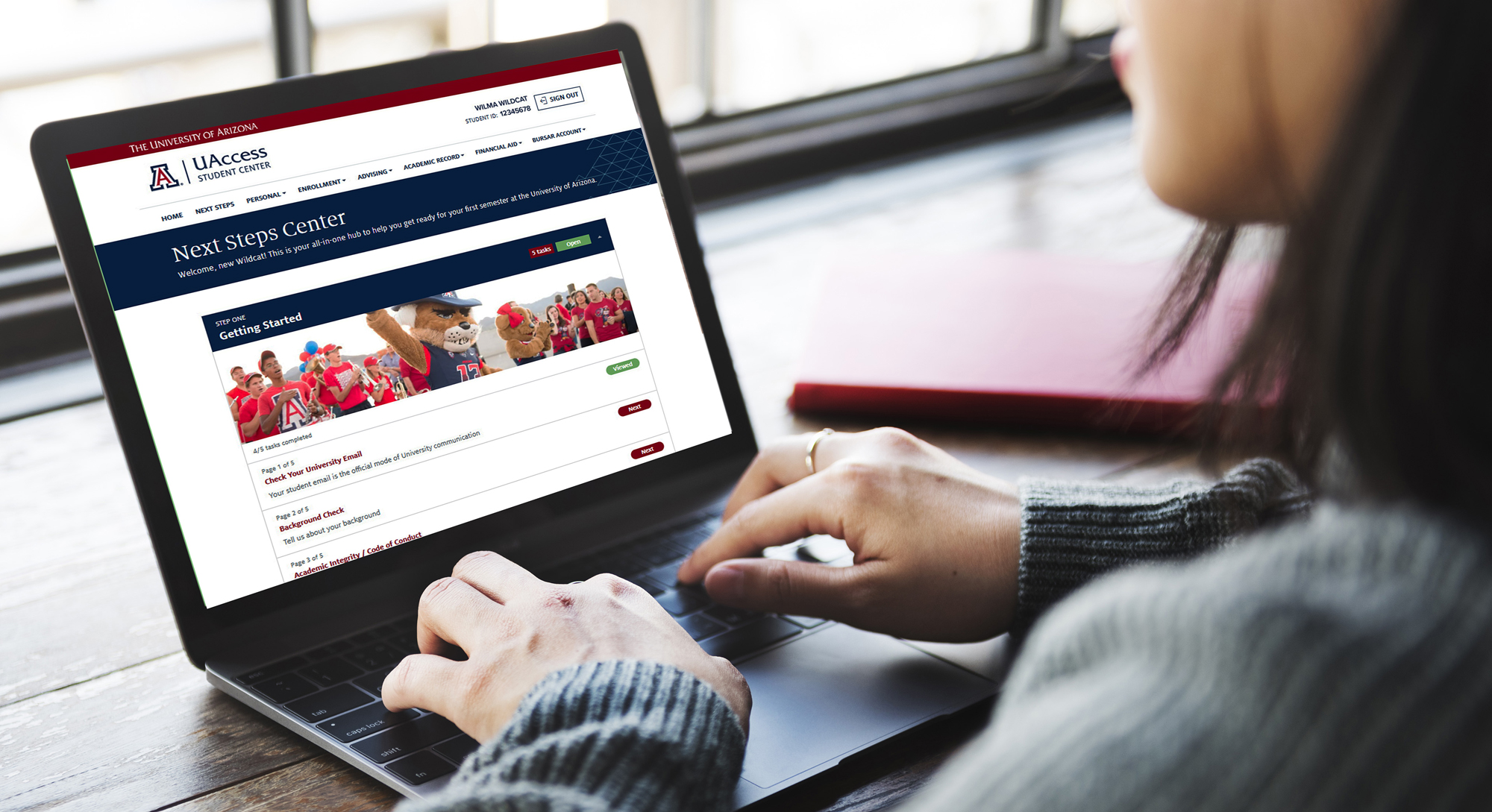 Prospective students who have applied to the University of Arizona start getting acceptance letters on January 15. This year, their process for completing all the important tasks needed to enroll at the university will be much easier. The Next Steps Center has been rebuilt in the UAccess Student Center, where students already go to access much of the academic and financial information and forms they need.